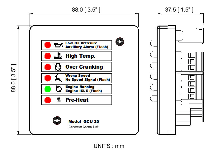 GCU-20 Automatic Engine and Generator Control Unit has many useful functions like annunciator alarm output and selectable EM81 / EM121 MPU signal for speed sensing. It's suitable for pump engine control. GCU-20 also provide IDLE control for electronic governors.